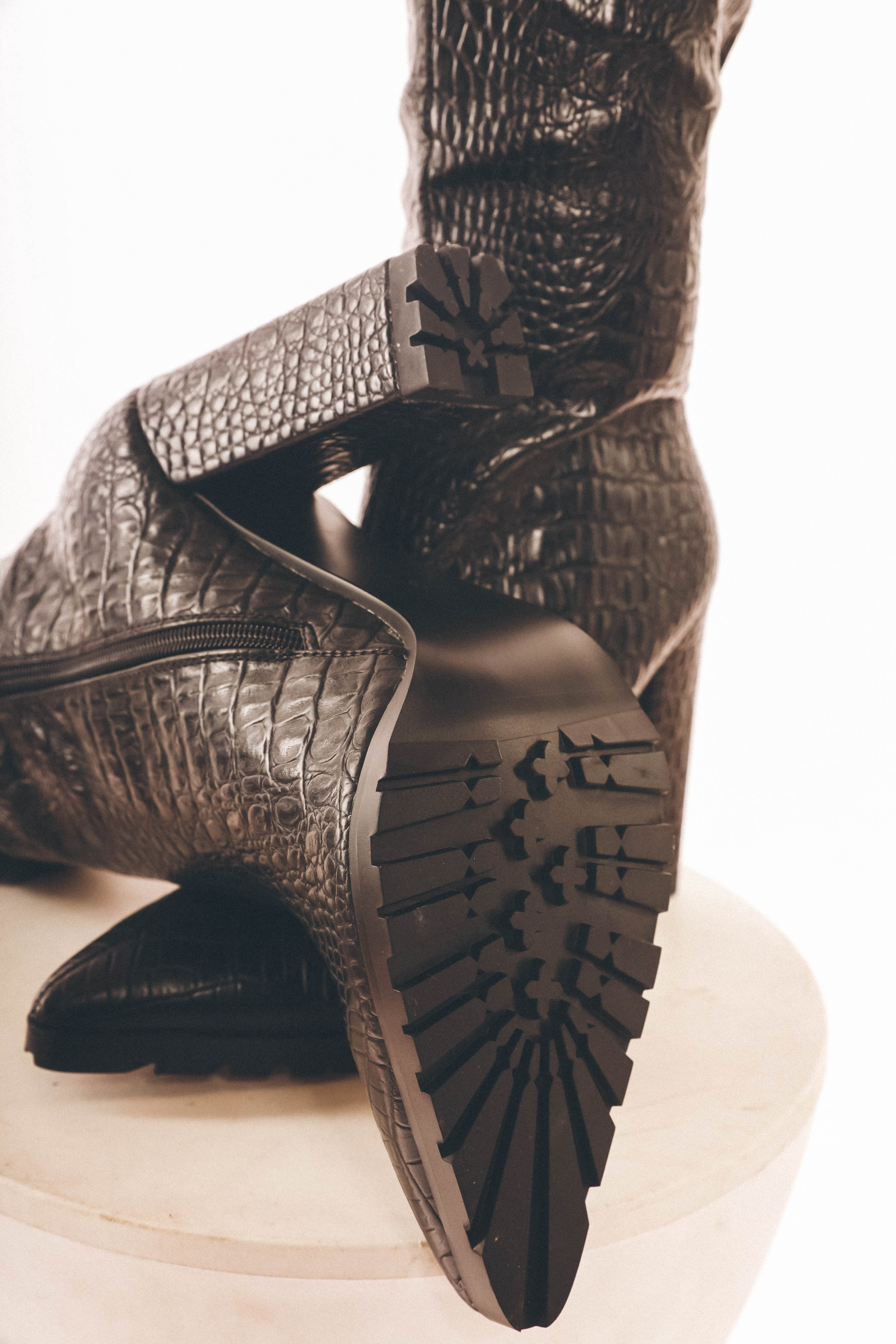 Introducing the Detroit Players Collection, a bold and luxurious line of boots inspired by Detroit's iconic style and fashion legacy. Available in sleek black and rich cognac, these boots are crafted from high-quality synthetic crocodile/gator material, offering a stretchy yet form-fitting silhouette that enhances every outfit. Designed for the modern woman who values luxury and style, these boots pay homage to Detroit's famed "gators," long recognized as a symbol of prestige and success.